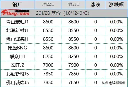 今日,青山代理持平報8月資源:鼎信J2-7700元/噸;J3-8000元/噸;J1-8400元/噸;J4-9000元/噸。后期,青山鋼廠盤價下調(diào)100元/噸與代理報價一致。市場其他產(chǎn)地報價:鑫峰J3、金海J3、中金J5、華樂J3A含稅7680-7750元/噸。北港新材J5、寶鋼D4、聯(lián)眾J2、永達J3E四、五尺含稅7700元/噸左右。