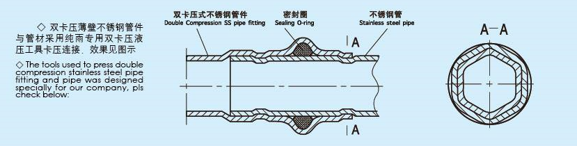 不銹鋼雙卡壓管件中雙卡壓的含義是一種利用金屬材料的效剛性和密封材料的彈性壓縮比原理,在管件的U型槽的兩側(cè)用一種專門的卡具,進(jìn)行壓接的管道方式,這種連接管道方式,我們稱之為雙卡壓式,這種連接管道的方式充分利用了承接口的長度。