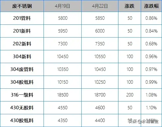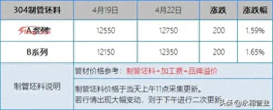 較上周五早間,今日早間市場201報價上漲50-100元/噸;304報價上漲100-200元/噸;目前主流報價區(qū)間:201新料在5900-6000元/噸,個別在6050元/噸左右;304新料在10500-10600元/噸,其中集中在10500-10550元/噸。