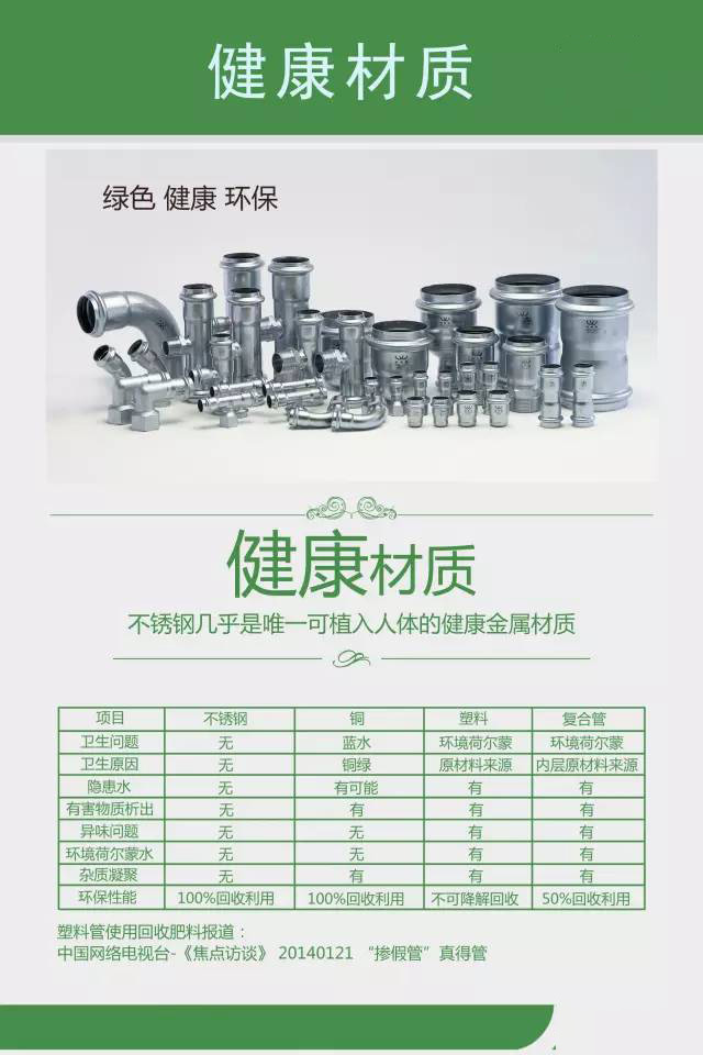 在這樣的大背景下,不銹鋼管材以其幾乎為零的漏水率和無與倫比的健康性被推上了城市供水系統(tǒng)和建筑物水管領(lǐng)域。研究并實(shí)際表明,一旦不銹鋼管材被廣泛運(yùn)用,城市管網(wǎng)的漏水率將大幅度降低,建筑物水質(zhì)將得到充分保障。薄壁不銹鋼管材以其所特有的安全性、可靠性、清潔性、耐用性、經(jīng)濟(jì)性和環(huán)保性等各方面突出優(yōu)勢,為保護(hù)水資源、改善水質(zhì)、保護(hù)人們的健康和提高生活質(zhì)量,保護(hù)人們的健康的提高生活質(zhì)量,保護(hù)環(huán)境和促進(jìn)社會(huì)經(jīng)濟(jì)的可持續(xù)發(fā)展發(fā)揮關(guān)鍵作用。